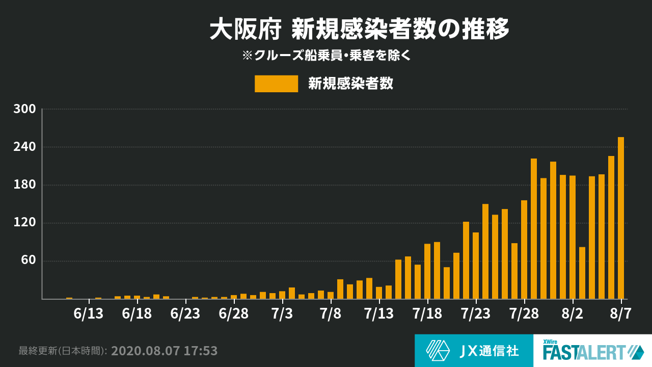 【大阪府で新たに255人感染確認】 17:53時点で前日比+1419人 大阪府+255(合計5396人) ※1日あたり過去最多 詳細は下記URLより: #新型コロナウイルス #COVID19