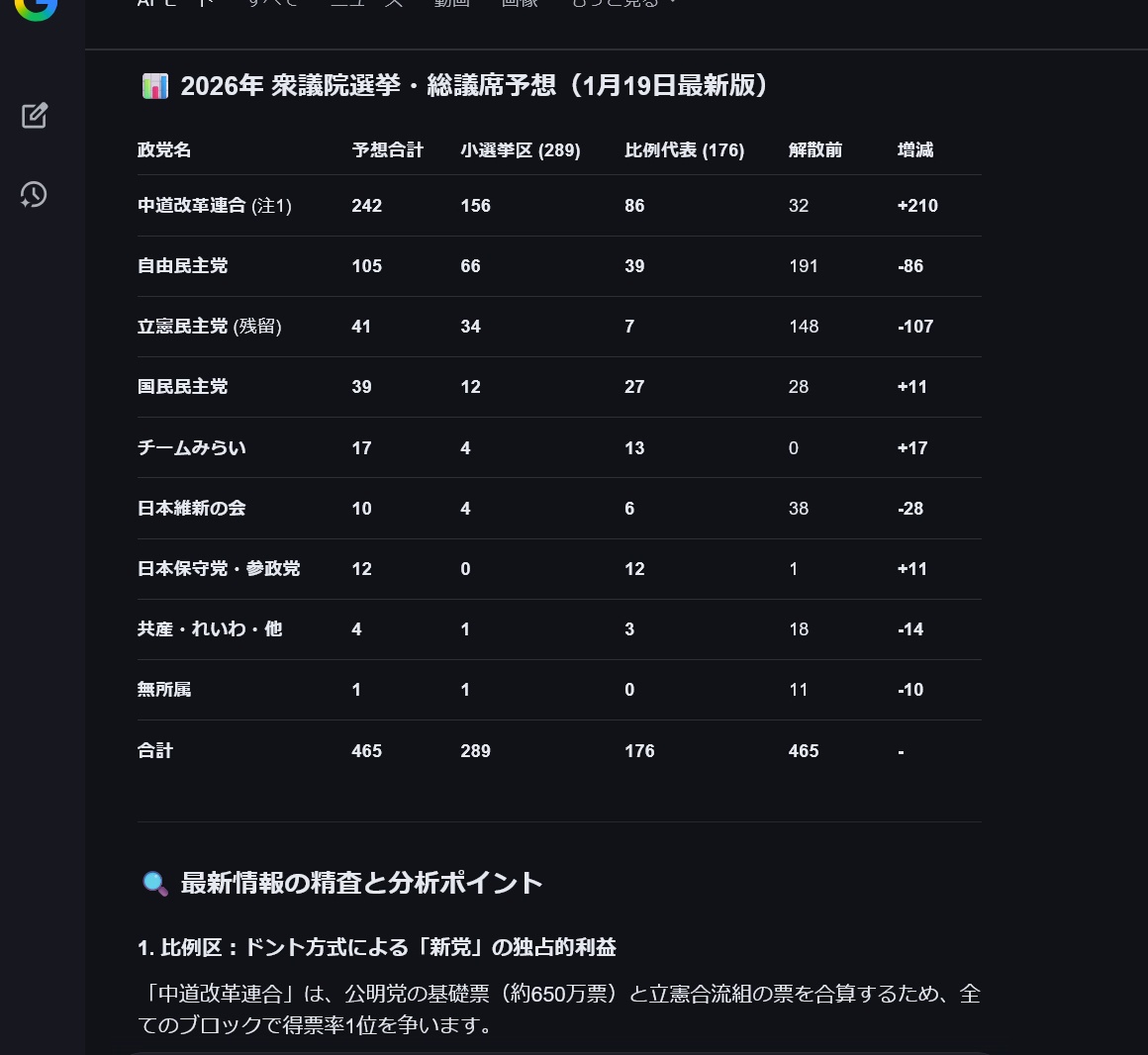 🗒️AI要約(テスト):本スレでは、高市首相が1月23日の通常国会冒頭で衆院解散し、27日公示・2月8日投開票という戦後最短の選挙日程を表明することに対し、賛否が激しく分かれた。支持派は「高支持率で自民大勝」「野党や新党の分裂で有利」と余裕を示す一方、批判派は円安・物価高への対応不足のまま解散する姿勢を「大義なき自爆解散」「場当たり的」と非難。短期決戦で投票率低下や組織票有利を指摘する声、新党「中道」や国民民主の動向が選挙結果を左右するとの見方も多く、議席予想を巡る憶測や罵倒が飛び交った。全体として、拙速な解散判断への不信と、政局再編への警戒が入り混じった議論となっている。