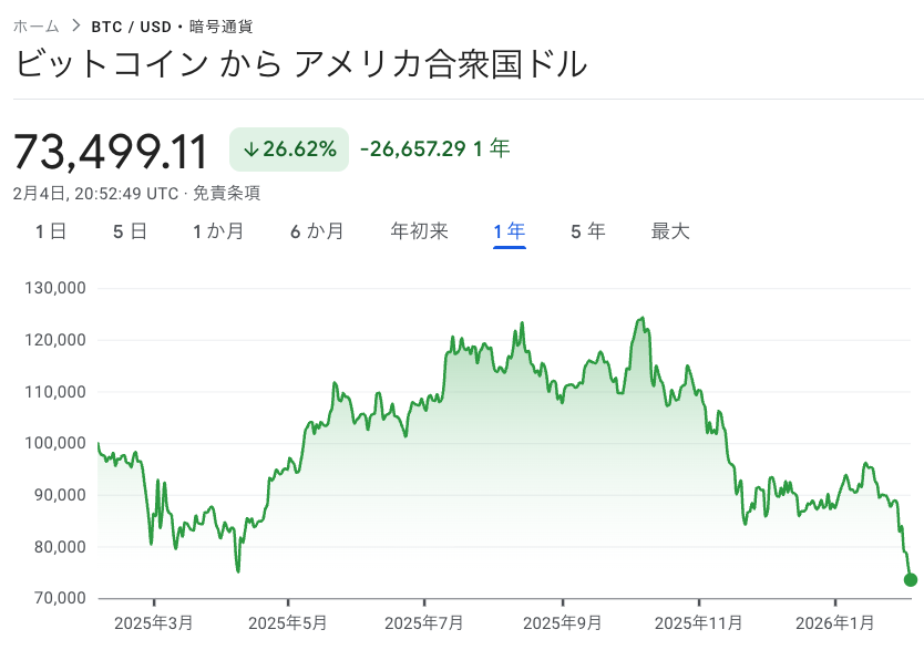 リスク嫌気の表れとして、ビットコインは一時7%近く下落し、7万3000ドル(約1140万円)をわずかに割り込み、トランプ米大統領の大統領選勝利以来の安値を記録した。その後は小幅に反発し、7万6800ドル付近で取引された。