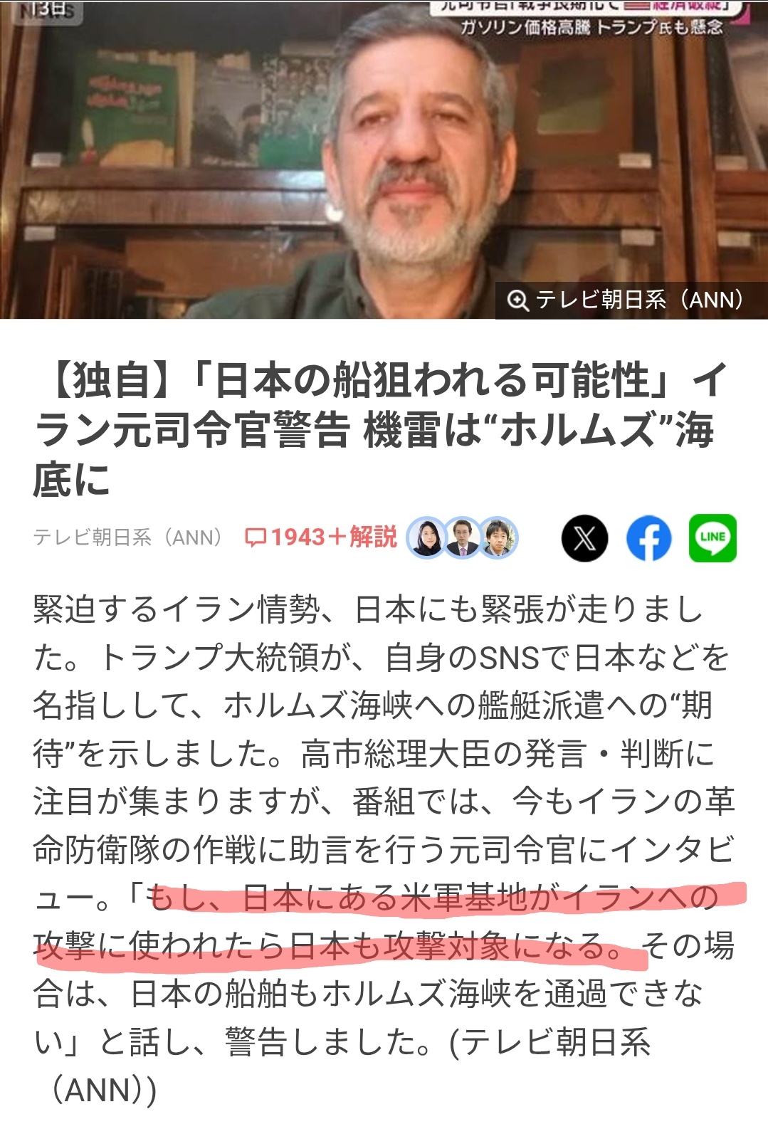 【独自】「日本の船狙われる可能性」イ ラン元司令官警告 機雷は“ホルムズ”海 底に