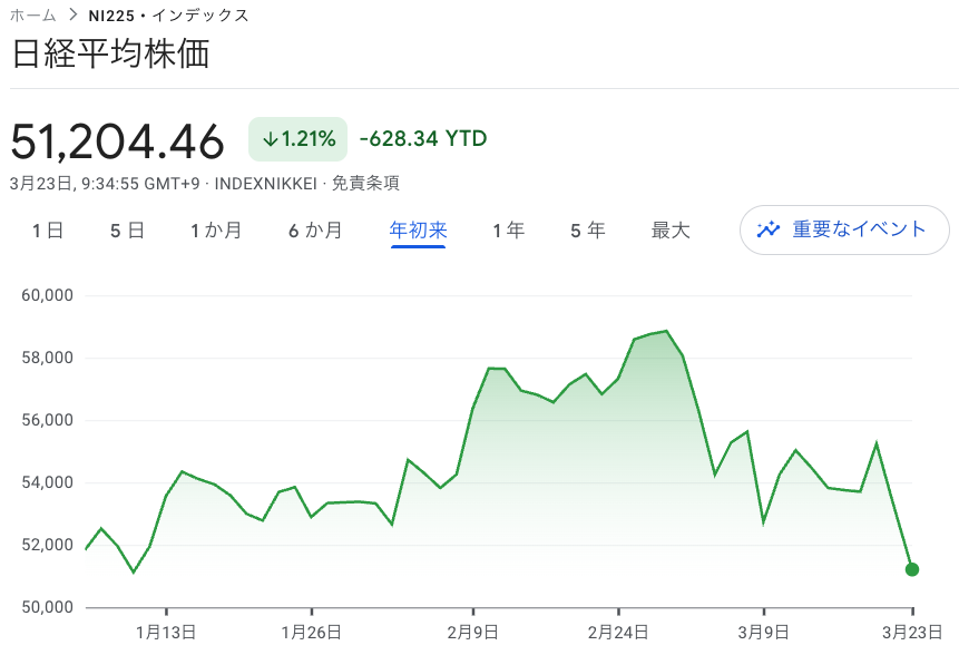 3月9日の暴落では日経51300まで落ちたけどその日のうちに53000まで回復したが
