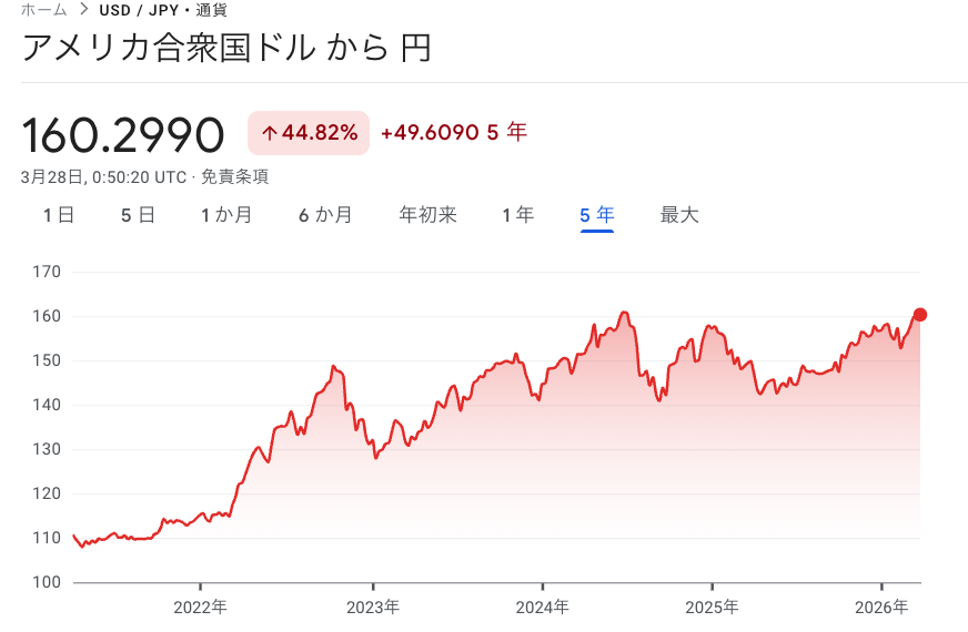 節目の160円の壁を突破して円は価値をどんどん下げていく
