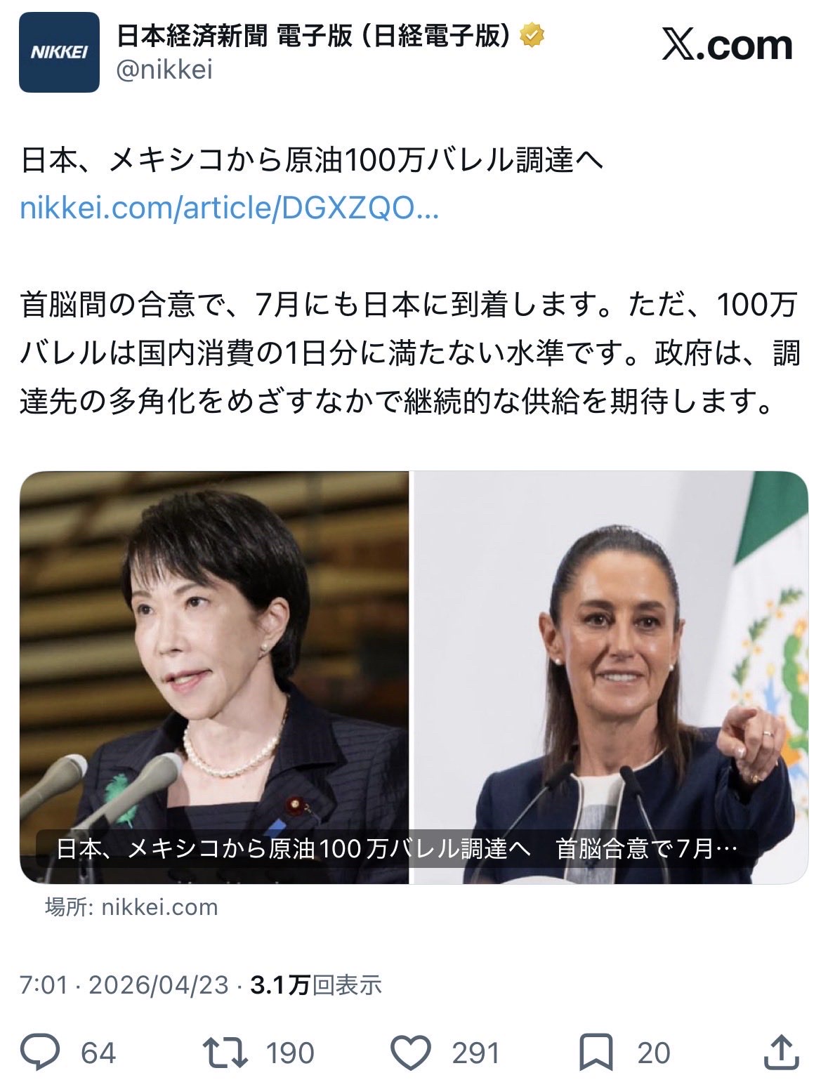また、原油備蓄を巡る議論もあり、「約250日分あるから余裕」とする意見に対し、「古い消費基準で実態と合っていない」「節約すれば延命できる」といった反論が出ている。さらに、メキシコからの輸入量が「1日分にも満たない」として政府対応を疑問視する声や、補助金政策への不満も目立つ。