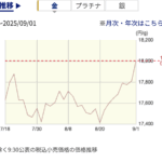 1 : 2025/09/01(月) 14:39:10.08 地金大手の田中貴金属工業(東京)は1日、金の店頭販売価格を1グラム当たり1万8001円に設定した。国内の金小売価格の指標として初めて節目の1万8千円を超え、過去最高値を記録した。買い取り価格も1グラム当たり1万7809円と過去最高値を付けた。 ...